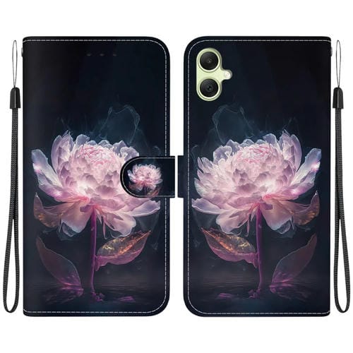 Estuche para Teléfono Samsung Galaxy A05 Cuero Dibujo Coloreado Textura de Cristal (Peonía Púrpura)