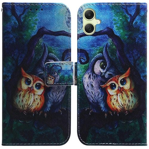 Funda de Cuero para Samsung Galaxy A05 con Tapa y Dibujo Coloreado (Búho de Pintura al Óleo)
