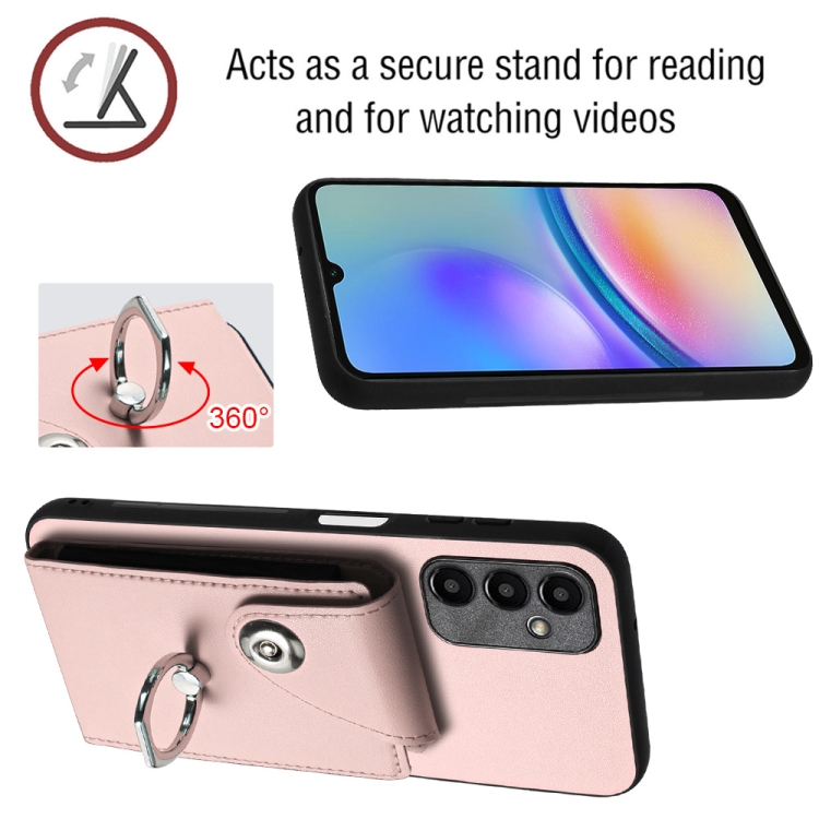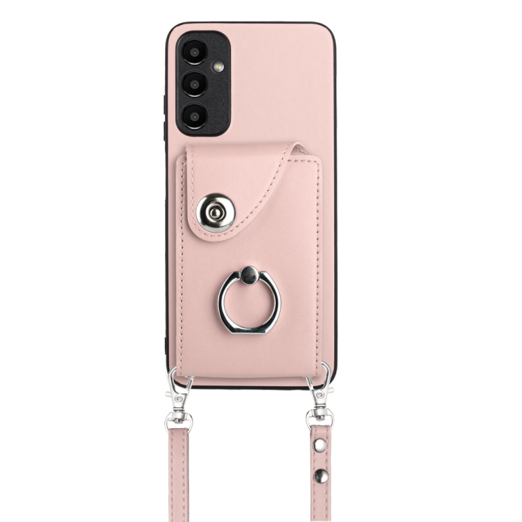 Funda para Teléfono Samsung Galaxy A05S 4G con Soporte para Anillo y Bolsa para Tarjeta con Cordón Largo (Rosa)