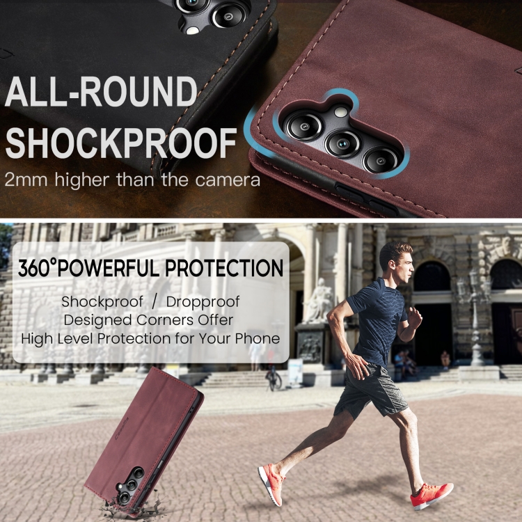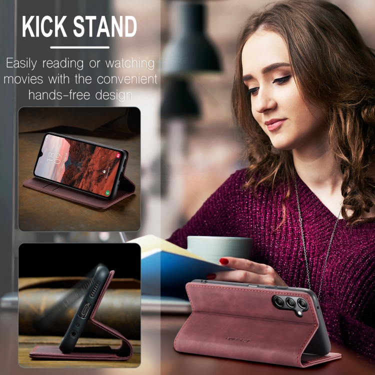 Funda para Teléfono Caseme 013 para Samsung Galaxy A05S con Tapa Horizontal Multifuncional (Rojo Vino)