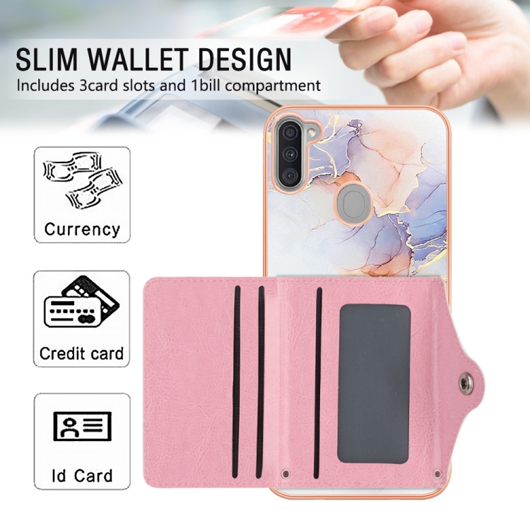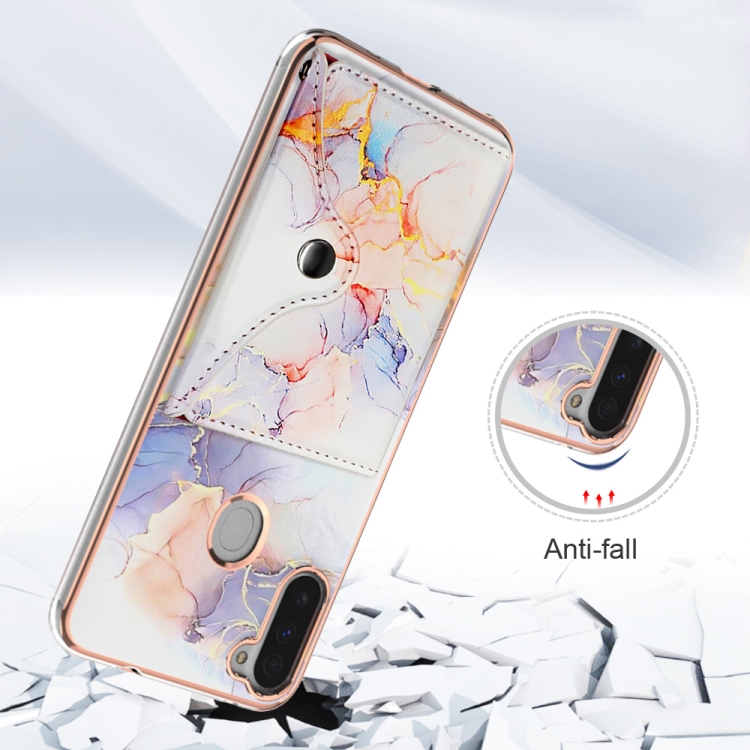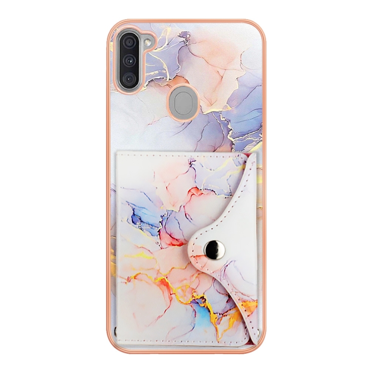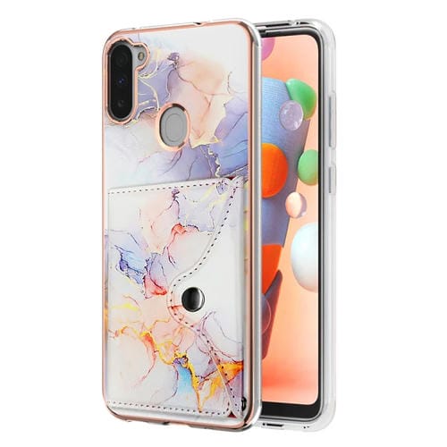 Estuche para Teléfono Samsung Galaxy A11 M11 con Ranura para Tarjeta y Patrón Mármol (Blanco)