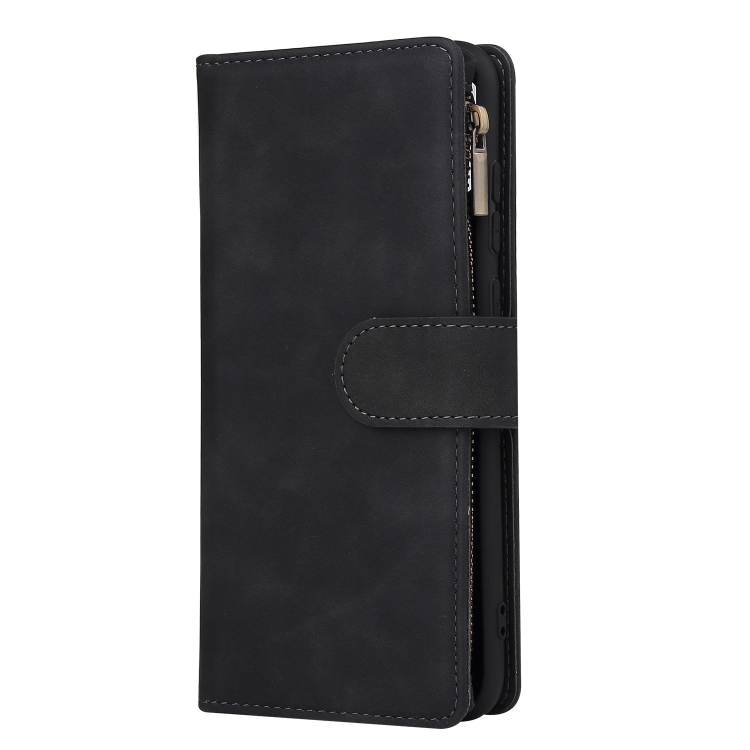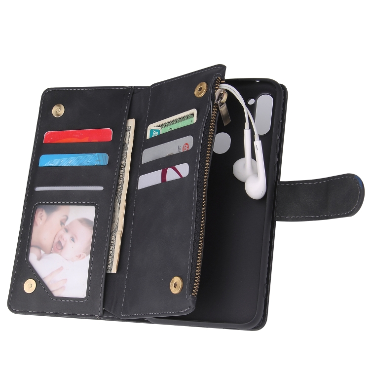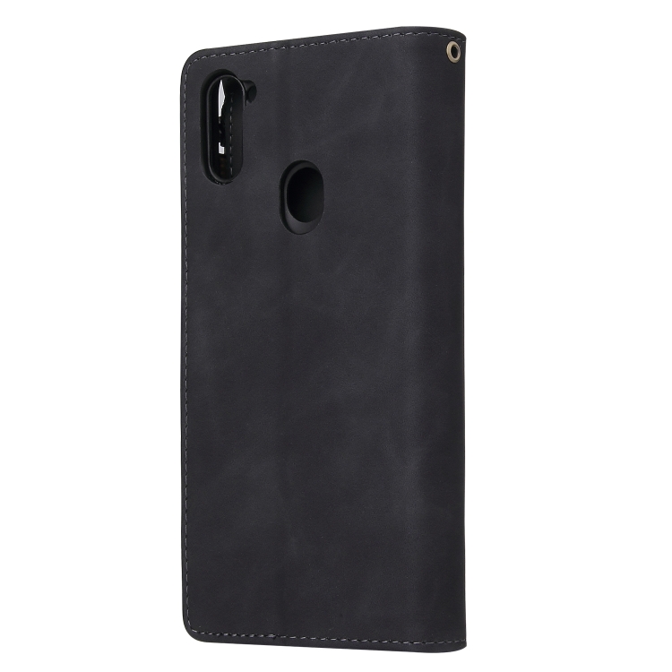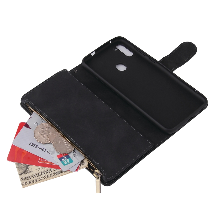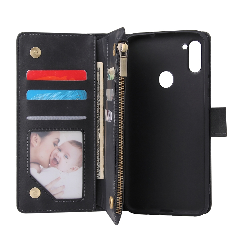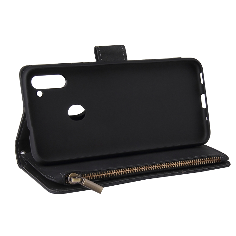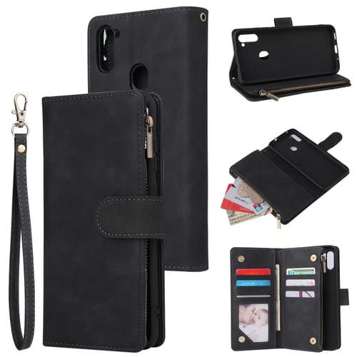 Estuche para Teléfono Samsung Galaxy A11 Cuero con Billetera y Cremallera Multifuncional (Negro)