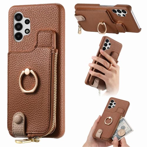 Funda para Samsung Galaxy A13 4G Litchi Leather Oil Edge Ring Zipper Wallet Back (Marrón)