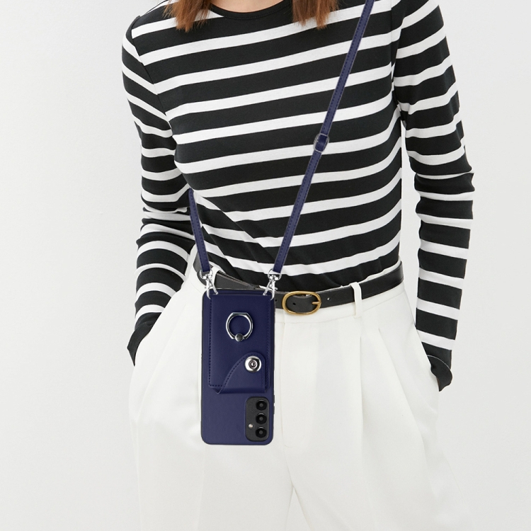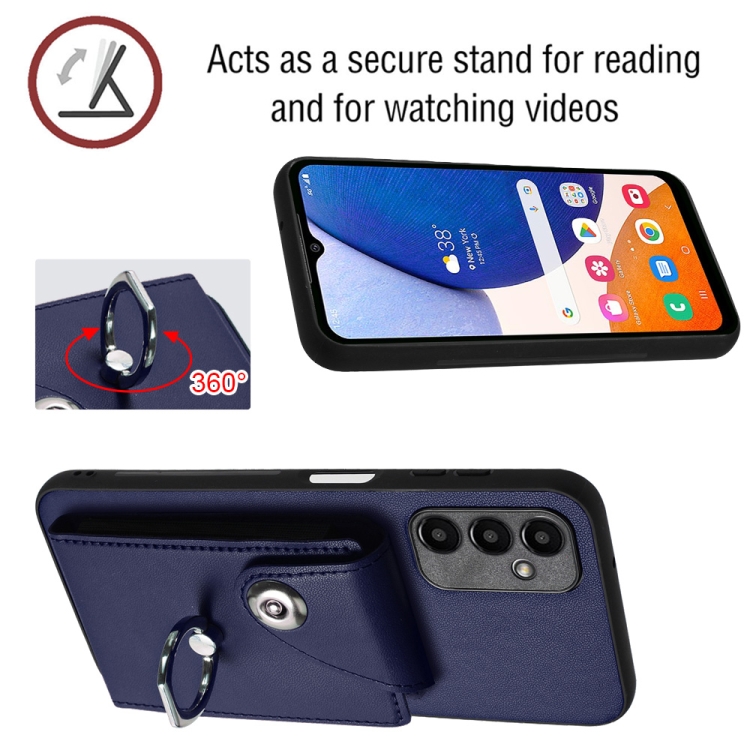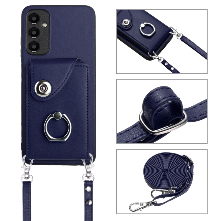 Funda para teléfono Samsung Galaxy A14 5G con soporte para anillo y bolsa para tarjeta con cordón largo (Azul)