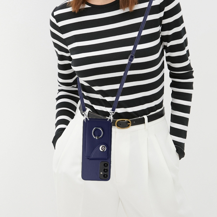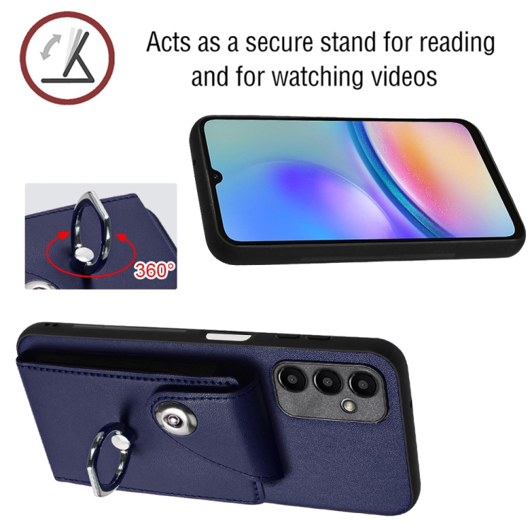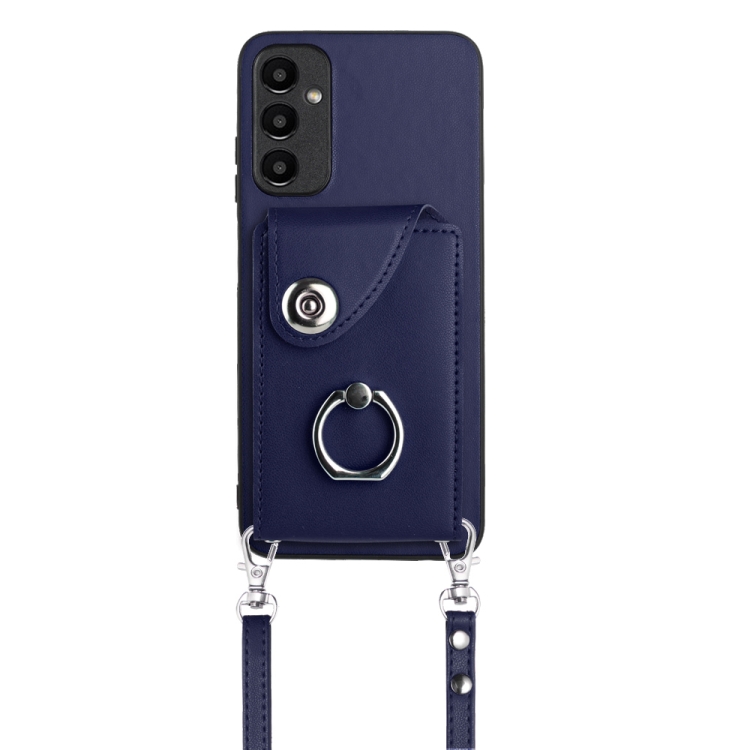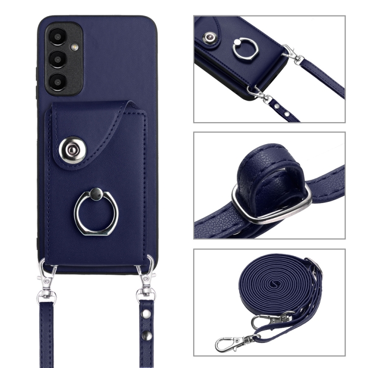 Funda para Teléfono Samsung Galaxy A15 4G con Soporte para Anillo y Bolsa para Tarjeta con Cordón Largo (Azul)