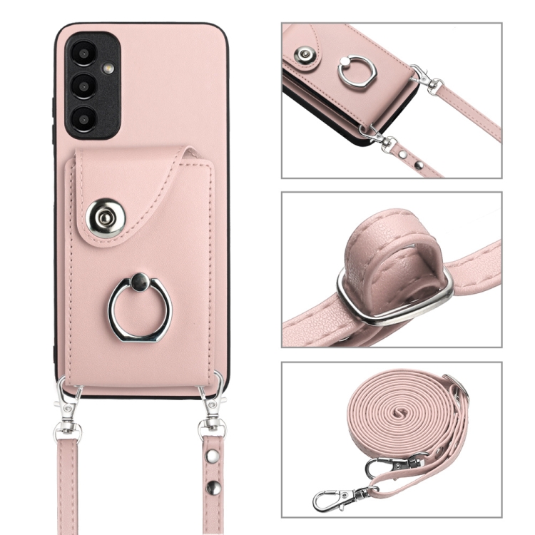 Funda para Teléfono Samsung Galaxy A15 4G con Soporte para Anillo y Bolsa para Tarjeta con Cordón Largo (Rosa)