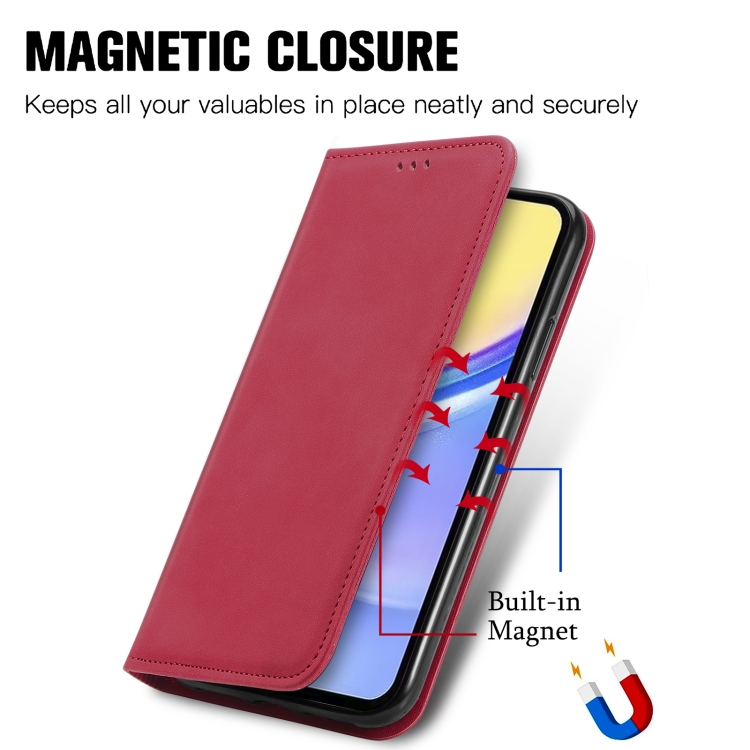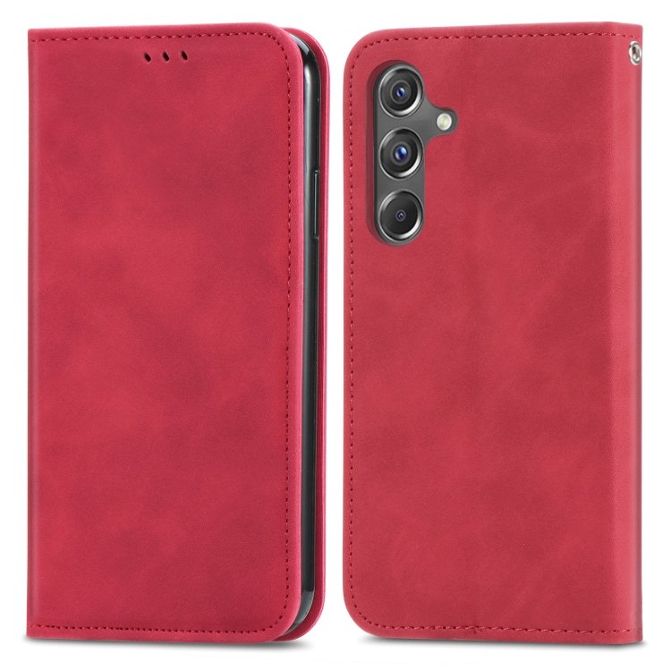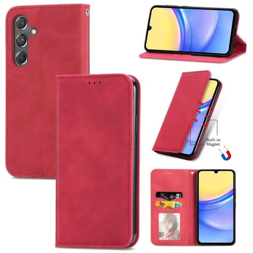 Funda para Samsung Galaxy A15 Retro Skin Feel Cuero Magnética (Rojo)
