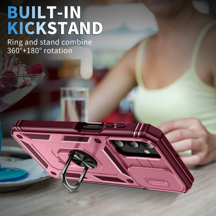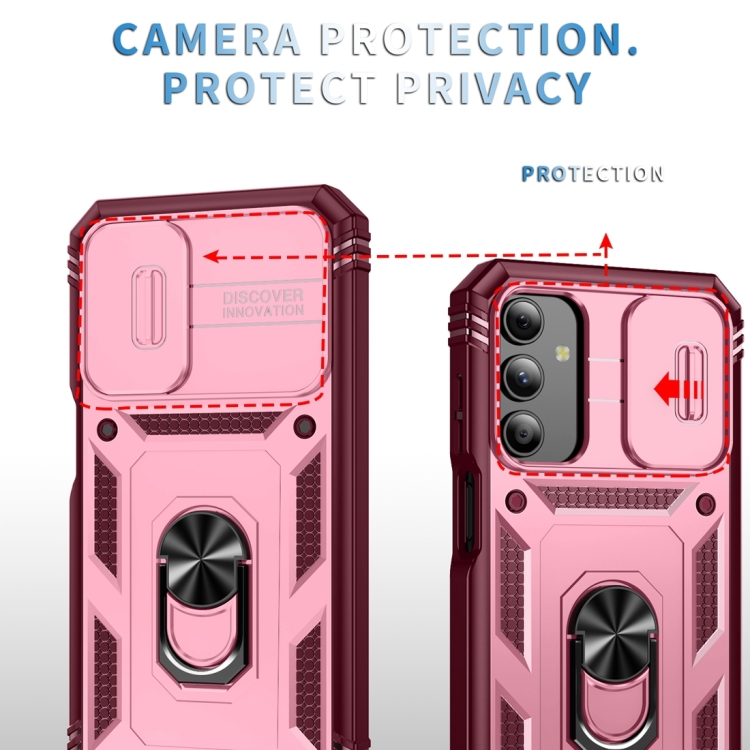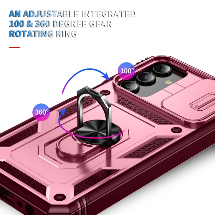 Funda para Teléfono Samsung Galaxy A15 Sliding Camshield TPU + PC con Soporte (Rosa + Rojo Rosa)