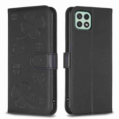 Funda para Samsung Galaxy A22 5G Cuero Relieve Cuatro Hojas (Negro)