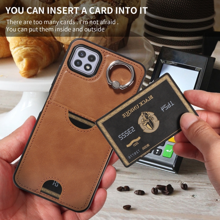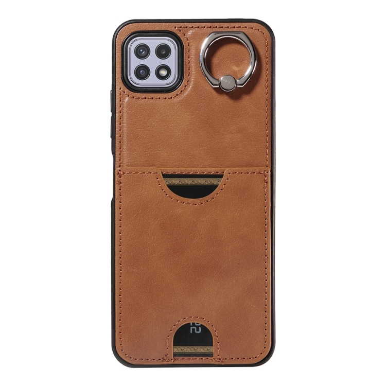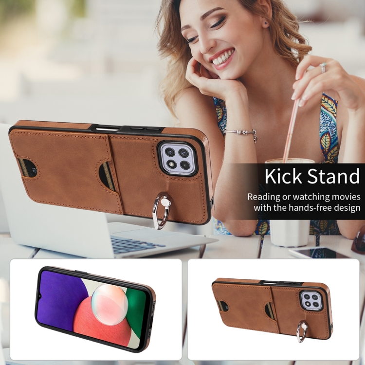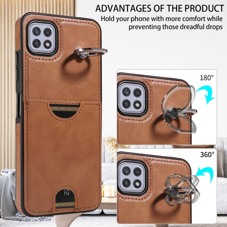 Funda para Teléfono Samsung Galaxy A22 5G con Soporte para Anillo y Ranura para Tarjeta (Marrón)
