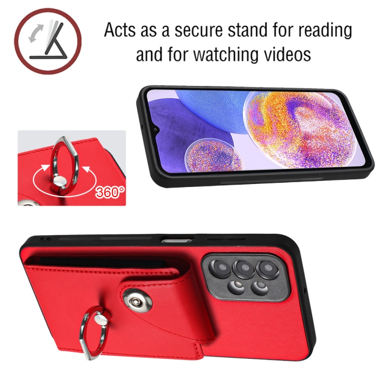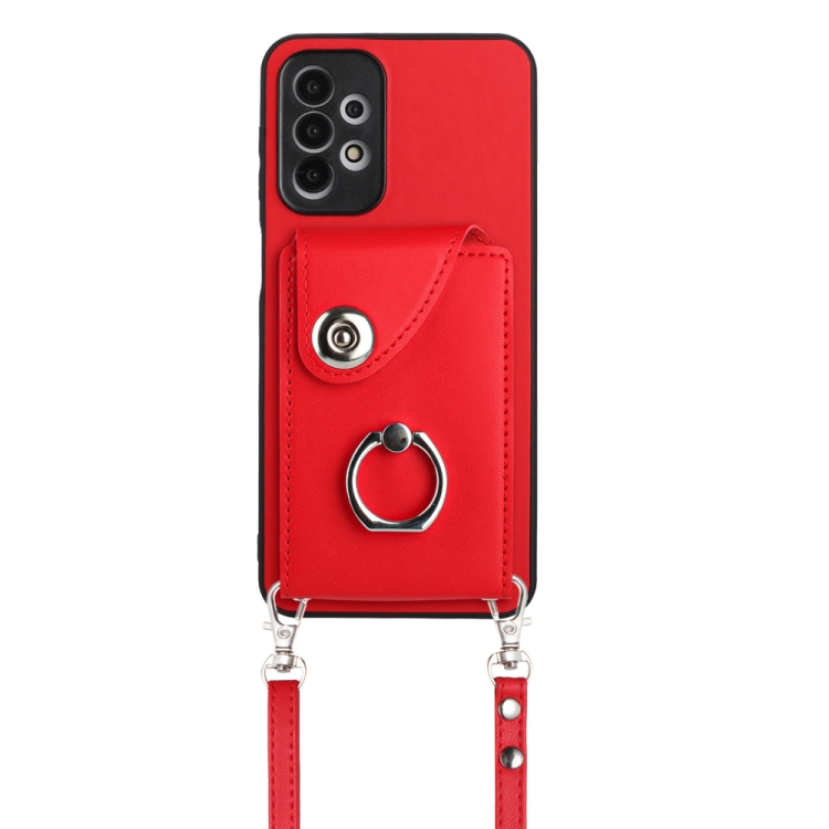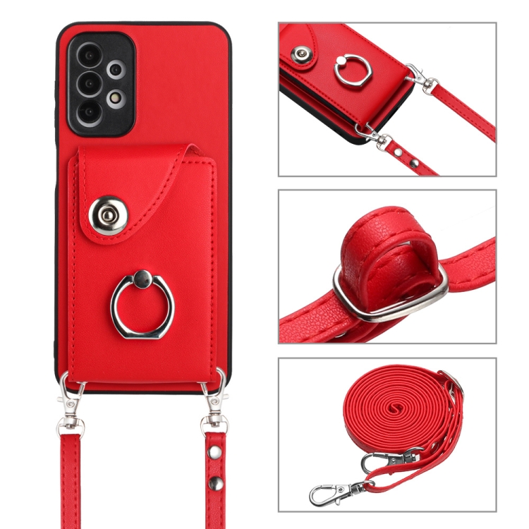 Funda para Teléfono Samsung Galaxy A23 Soporte Anillo Bolsa Tarjeta Cordón Largo (Rojo)