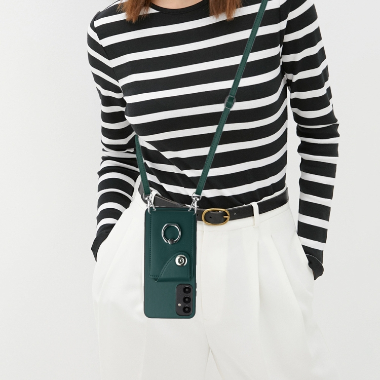 Funda para teléfono Samsung Galaxy A24 4G con soporte para anillo y bolsa para tarjeta con cordón largo (Verde)