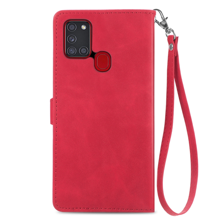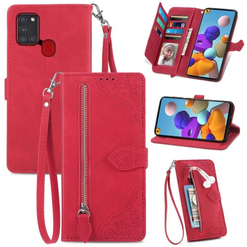 Funda de Cuero Samsung Galaxy A24S con Cremallera y Flores en Relieve (Rojo)
