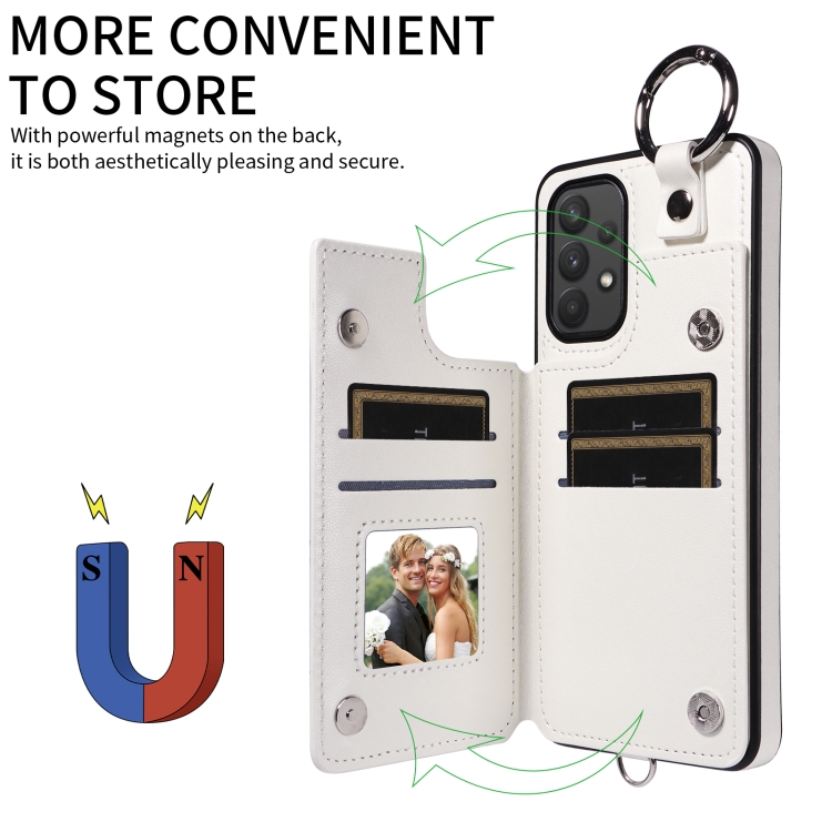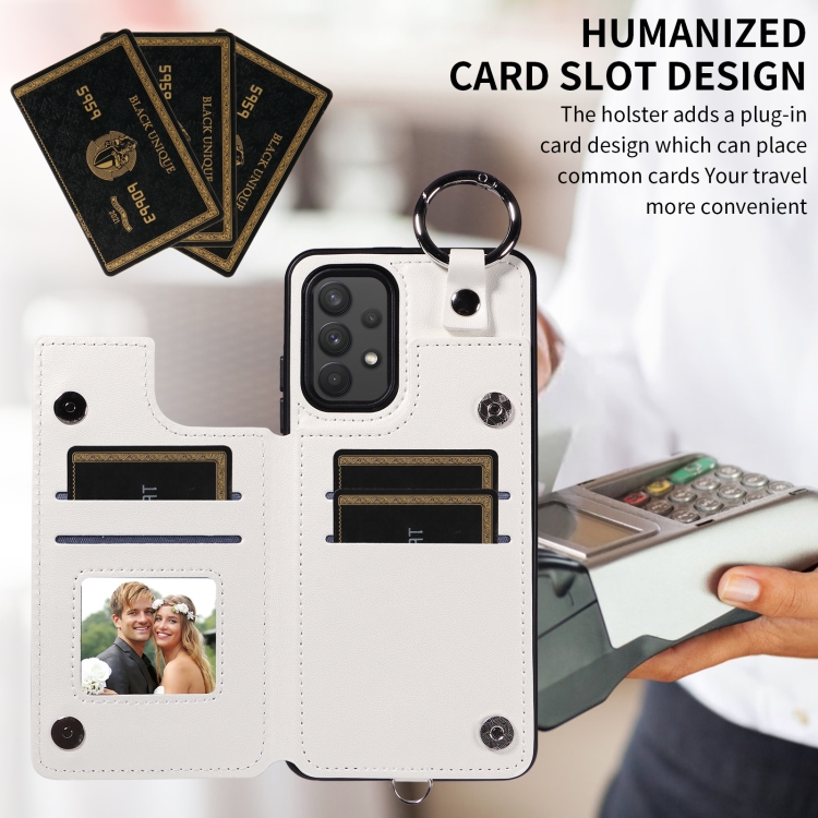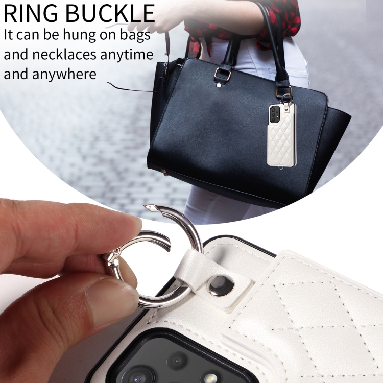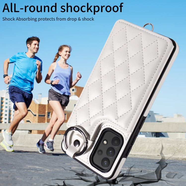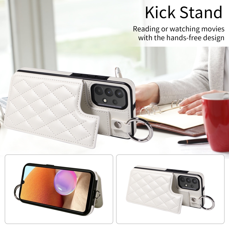 Estuche para Teléfono Samsung Galaxy A32 4G con Bolsa para Tarjetas Textura Rómbica y Cordón Corto (Blanco)