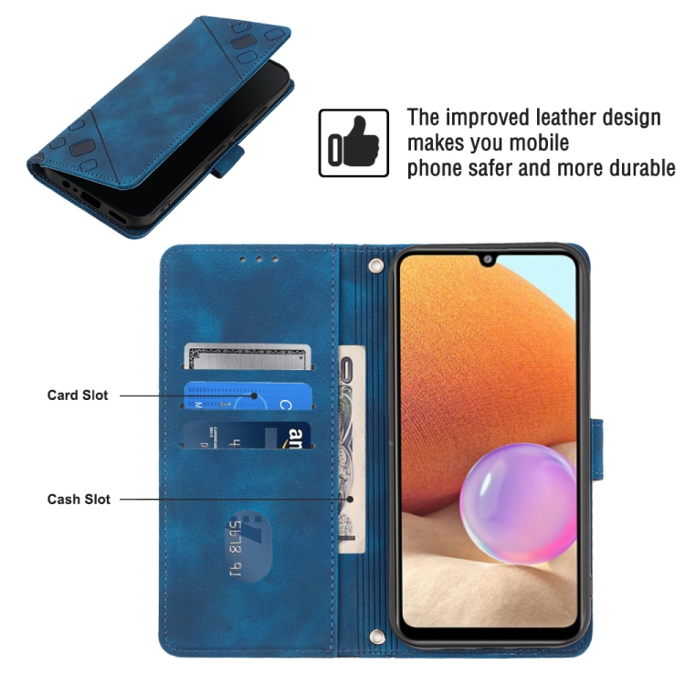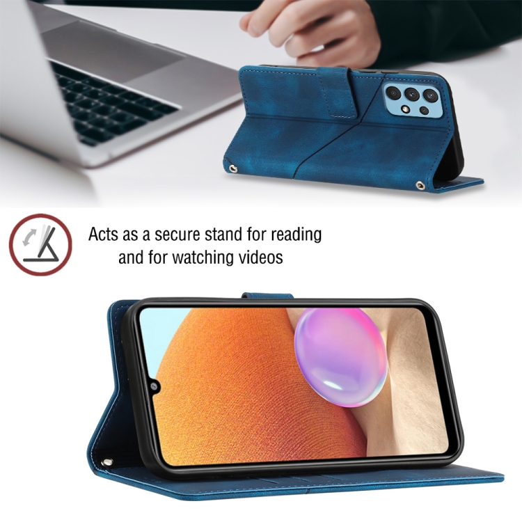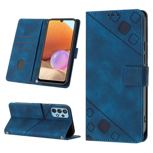 Estuche para Teléfono Samsung Galaxy A32 4G Cuero En Relieve con Tacto de Piel (Azul)
