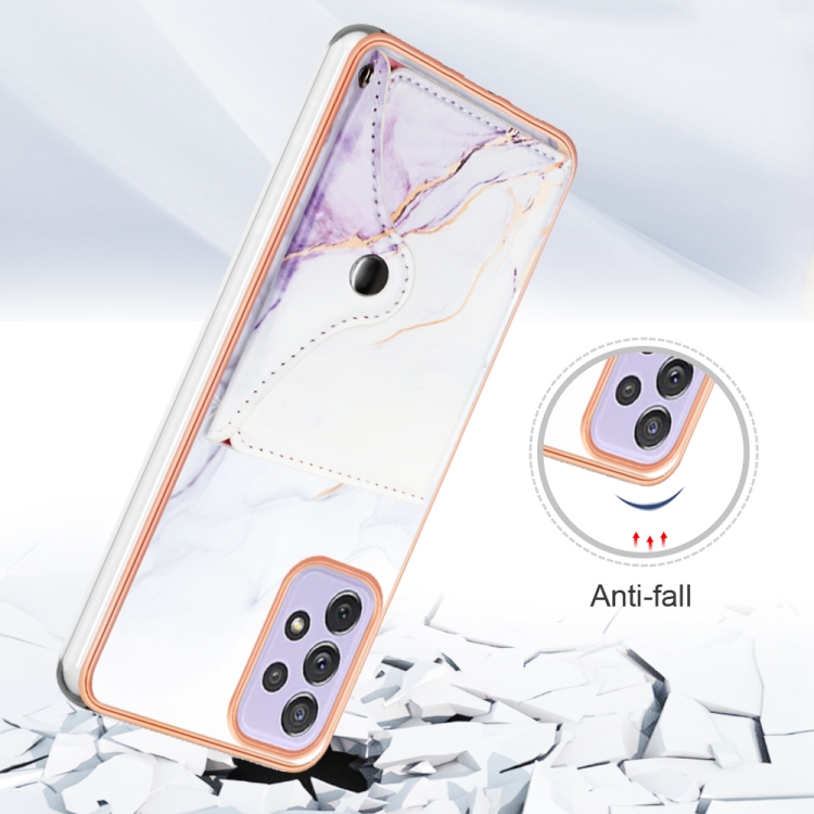 Estuche para Teléfono Samsung Galaxy A33 5G con Ranura para Tarjeta y Patrón de Mármol (Blanco y Morado)