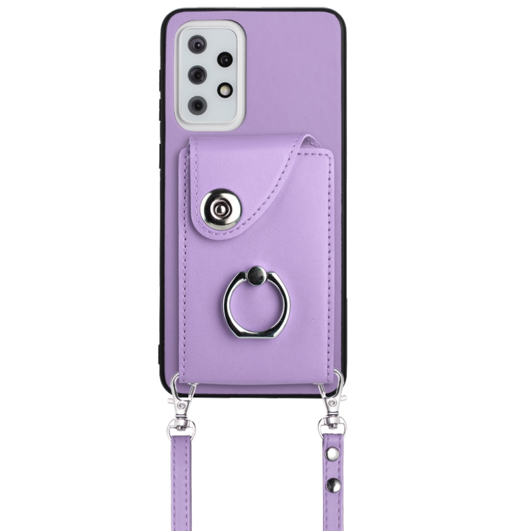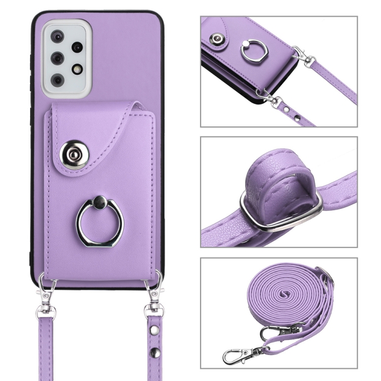 Funda para Teléfono Samsung Galaxy A33 5G con Soporte Anillo Bolsa Tarjeta y Cordón Largo (Púrpura)