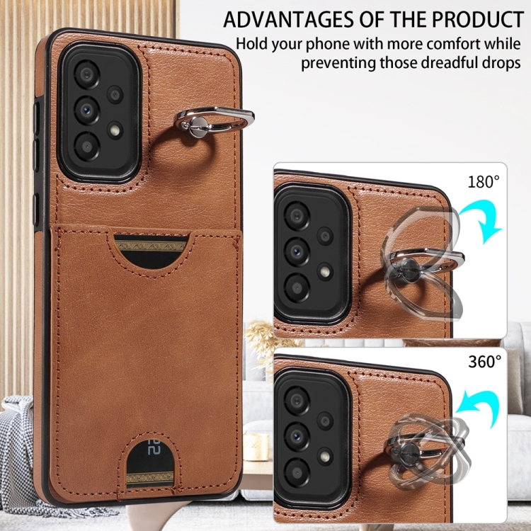 Funda para Teléfono Samsung Galaxy A33 5G con Soporte para Anillo y Ranura para Tarjeta (Marrón)