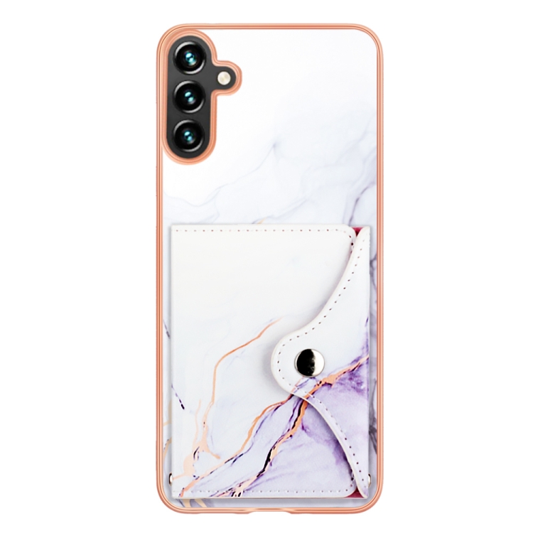 Estuche para Teléfono Samsung Galaxy A34 5G con Ranura para Tarjeta Imd y Patrón de Mármol (Blanco y Morado)