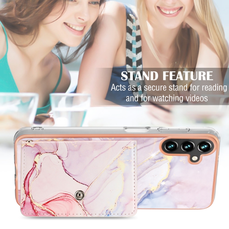 Estuche para Teléfono Samsung Galaxy A34 5G con Ranura para Tarjeta Imd Patrón de Mármol (Oro Rosa)