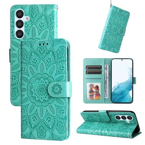 Estuche para Teléfono Samsung Galaxy A34 5G Cuero Estampado Girasol En Relieve (Verde)