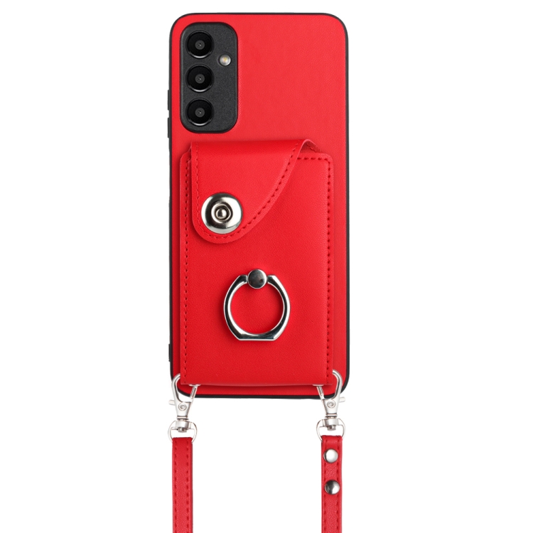Funda para Teléfono Samsung Galaxy A34 5G con Soporte para Anillo y Bolsa para Tarjeta con Cordón Largo (Rojo)