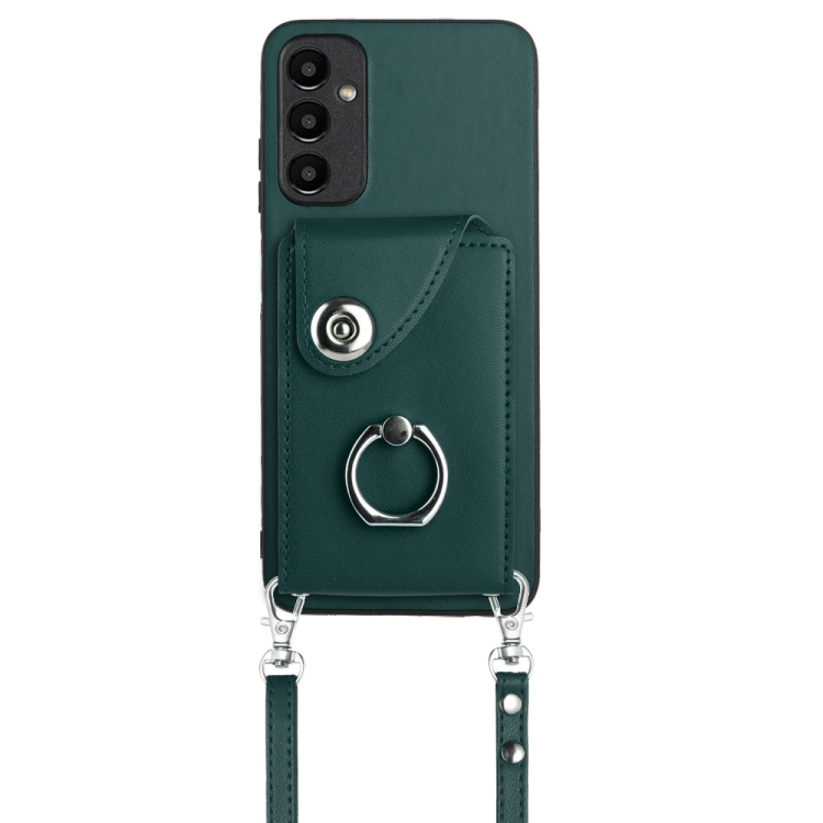 Funda para Teléfono Samsung Galaxy A34 5G con Soporte para Anillo y Bolsa para Tarjeta con Cordón Largo (Verde)