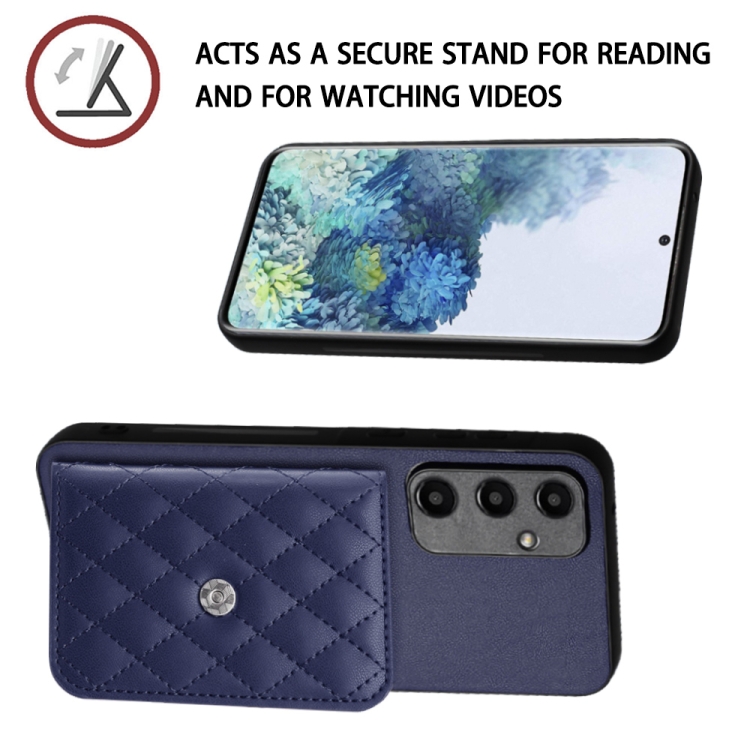 Estuche para Teléfono Samsung Galaxy A35 Rfid con Bolsa para Tarjetas Textura Rómbica Cordón Largo (Púrpura Oscuro)