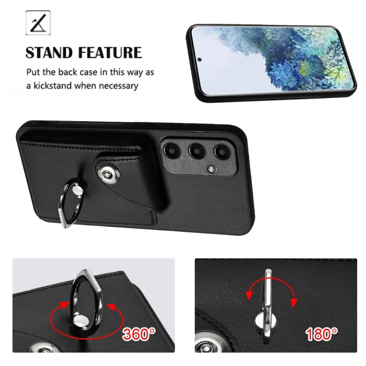 Funda para Teléfono Samsung Galaxy A35 con Soporte para Anillo y Bolsa para Tarjeta con Cordón Largo (Negro)