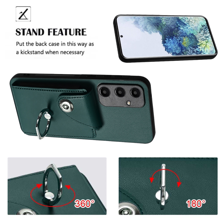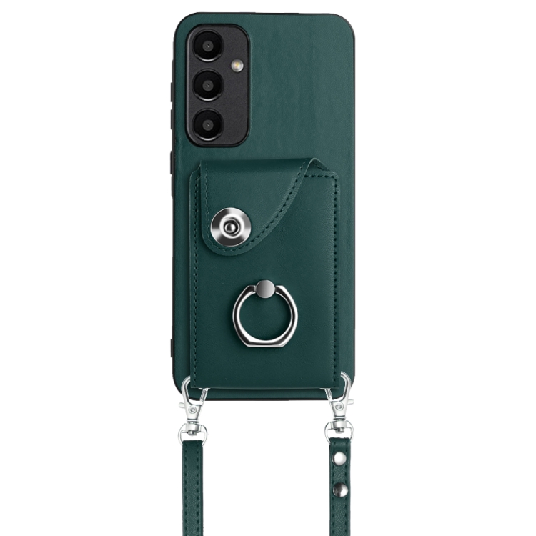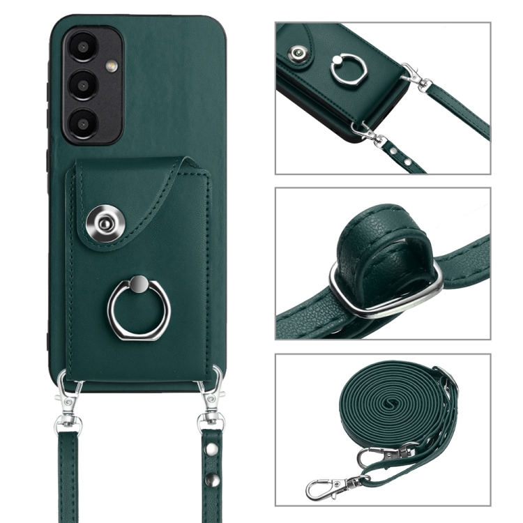 Funda para Teléfono Samsung Galaxy A35 con Soporte para Anillo y Bolsa para Tarjeta con Cordón Largo (Verde)