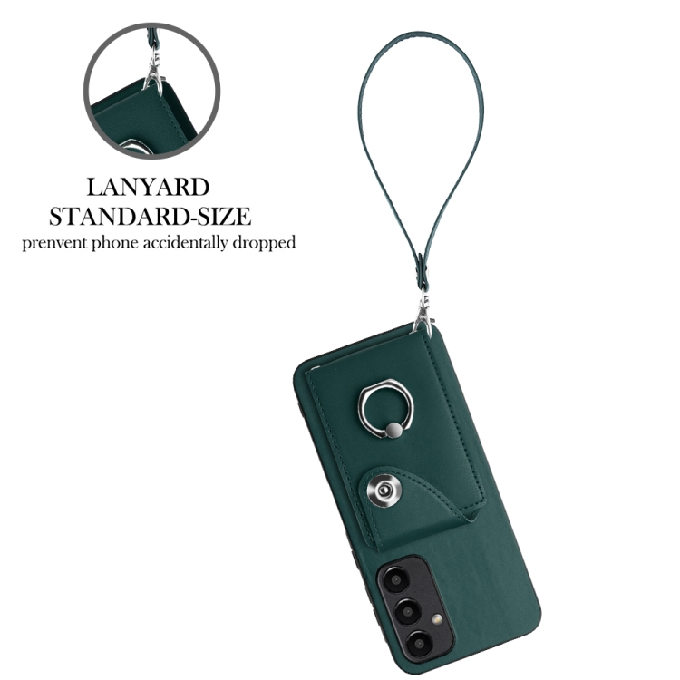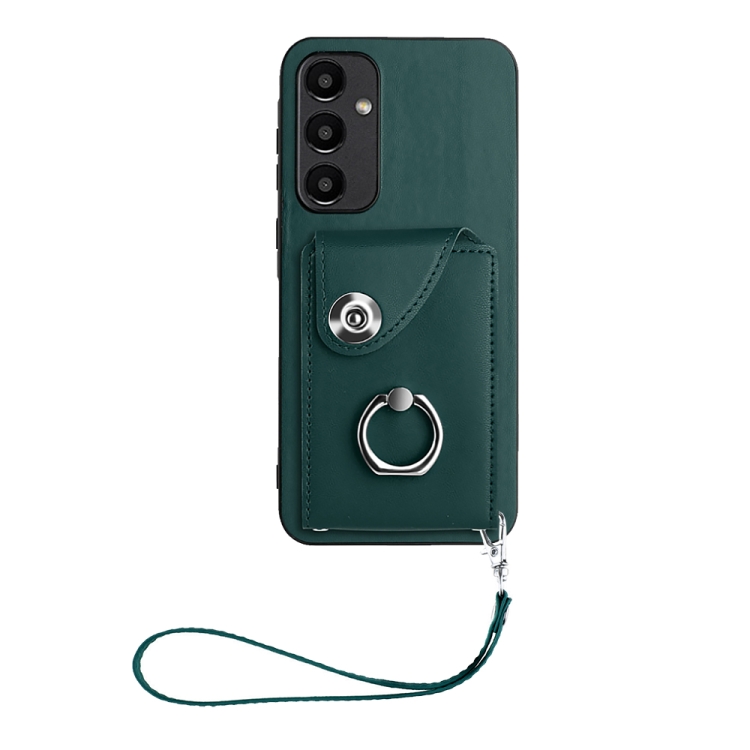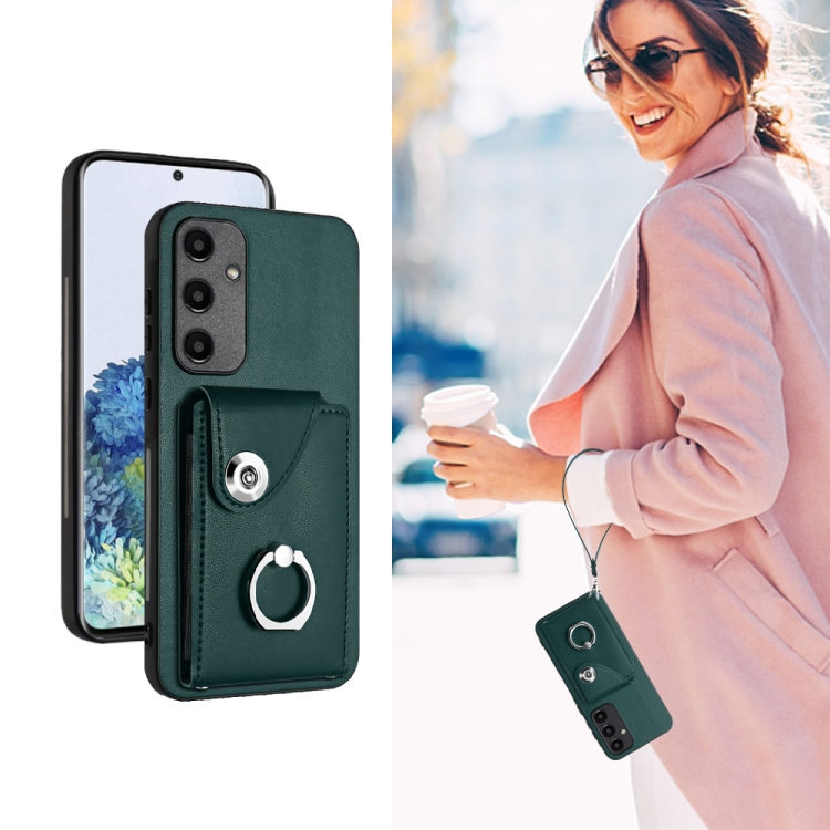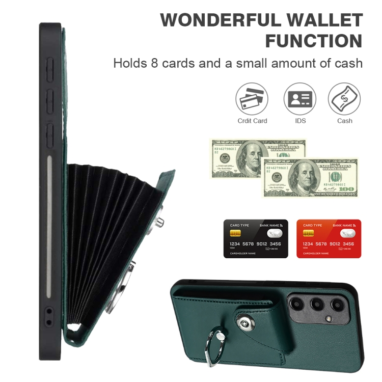 Funda para Teléfono Samsung Galaxy A35 de PU con Soporte para Anillo y Bolsa para Tarjeta con Cordón (Verde)