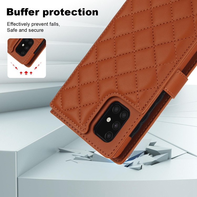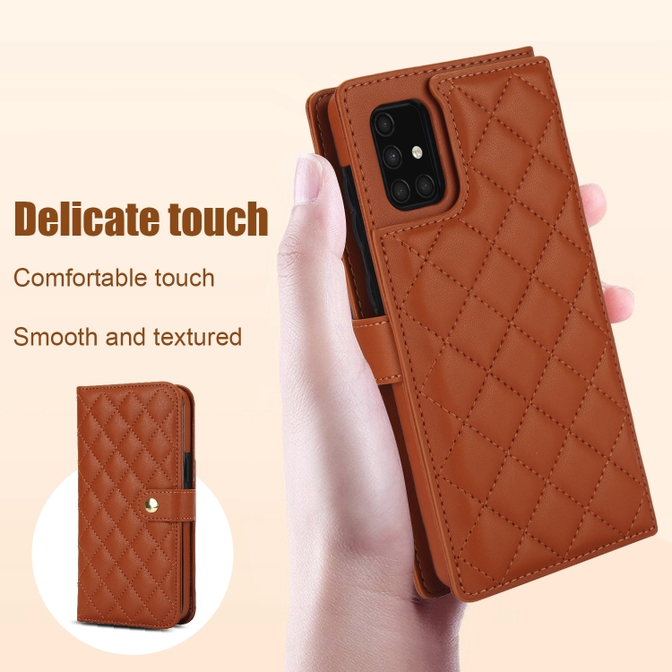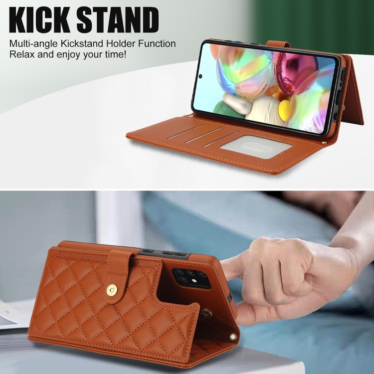Estuche para Teléfono Samsung Galaxy A51 4G Crossbody Cuero Rómbico Multifunción (Marrón)