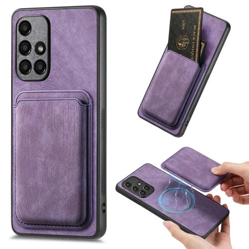 Funda de Teléfono Samsung Galaxy A51 Magnética con Bolso de Tarjeta Cuero Retro (Púrpura)