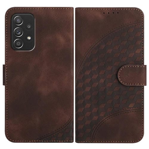 Funda de cuero Samsung Galaxy A52 4G 5G Yx0060 con relieve y cabeza de elefante con cordón (Café)