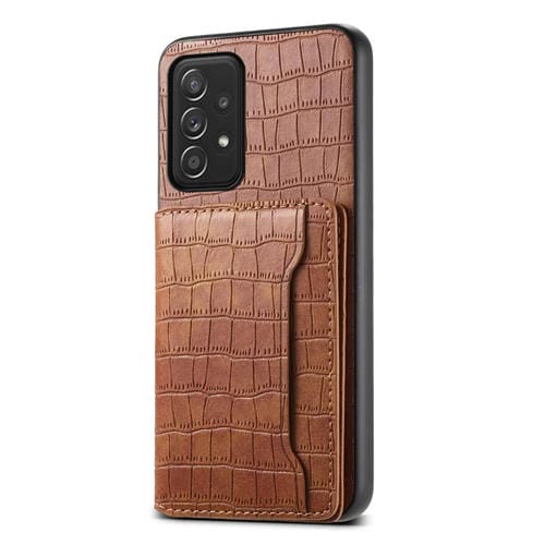 Funda para Teléfono Samsung Galaxy A52 5G Diseño Bolsa para Tarjetas Textura Cocodrilo (Marrón)