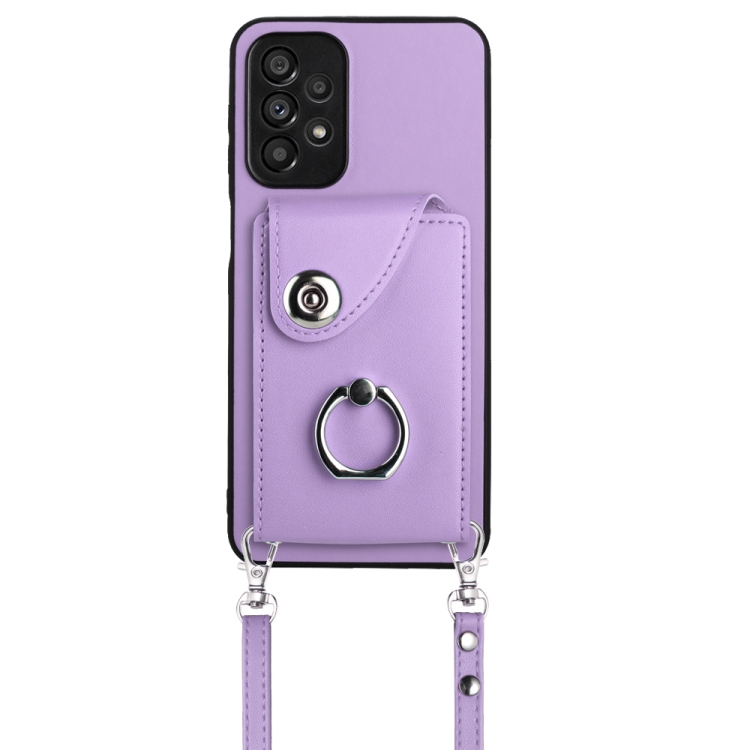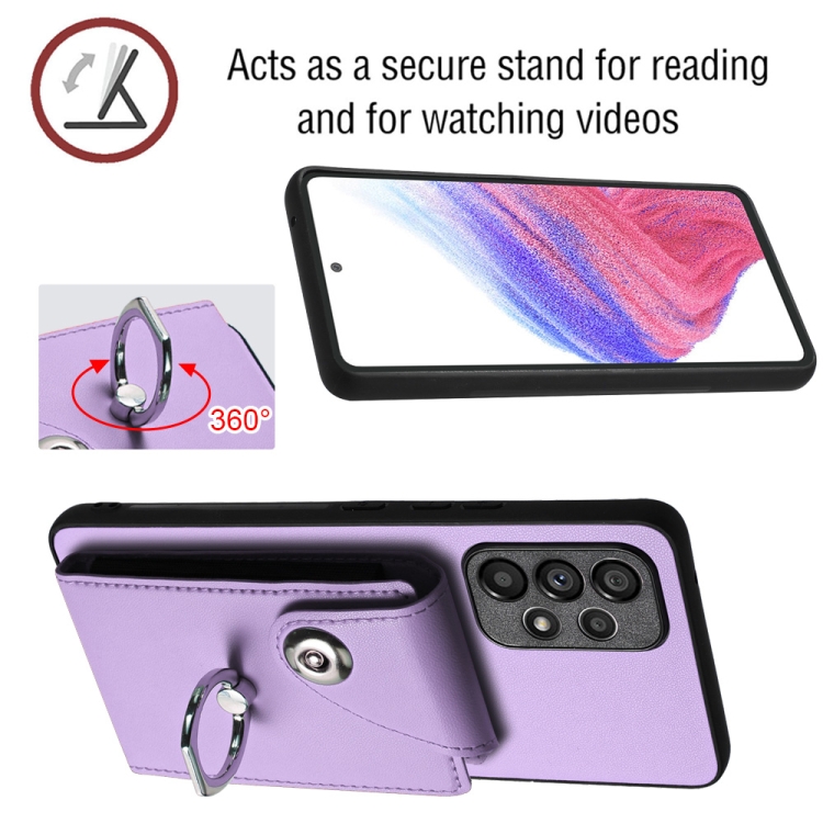 Funda para Teléfono Samsung Galaxy A53 5G con Soporte para Anillo y Bolsa para Tarjeta con Cordón Largo (Púrpura)