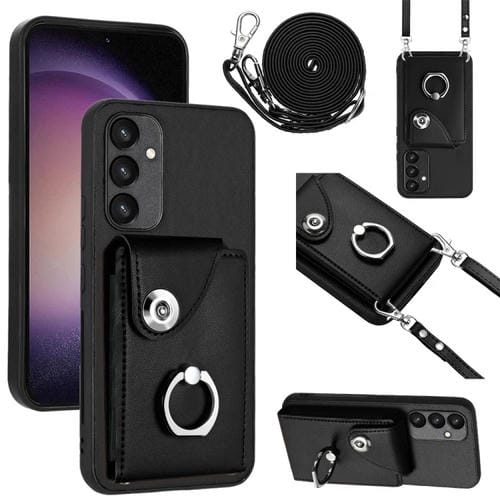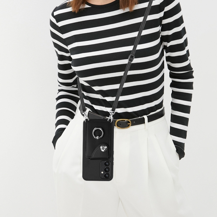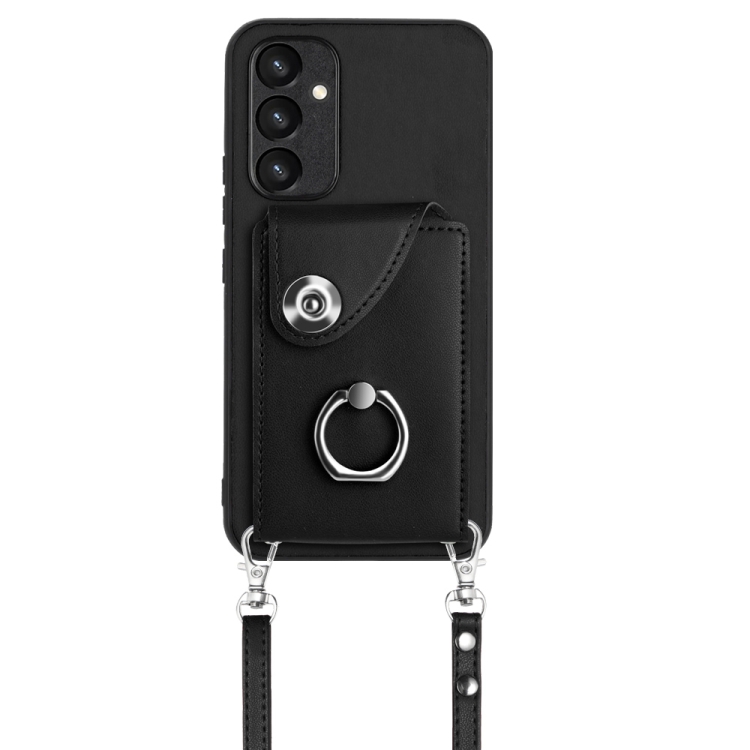 Funda para Teléfono Samsung Galaxy A54 5G con Soporte para Anillo y Bolsa para Tarjeta con Cordón Largo (Negro)