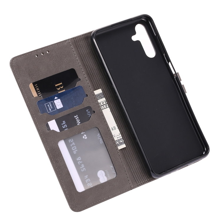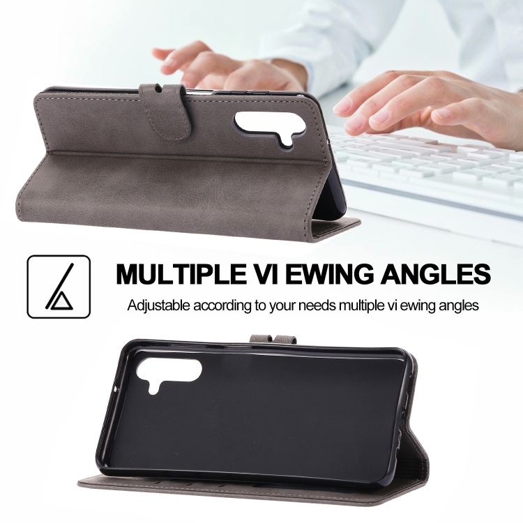 Funda para Teléfono Samsung Galaxy A55 5G Cuero con Tapa Patrón Gato Feliz (Gris)
