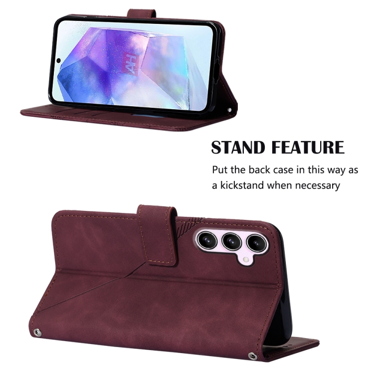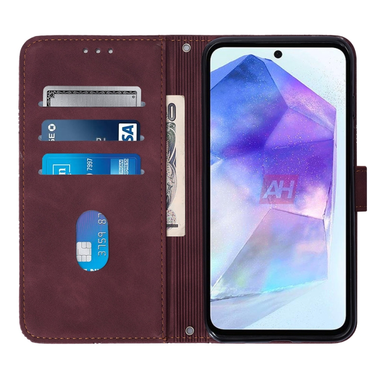 Funda para Samsung Galaxy A55 Crossbody Cuero con Tapa en Relieve 3D (Rojo Vino)