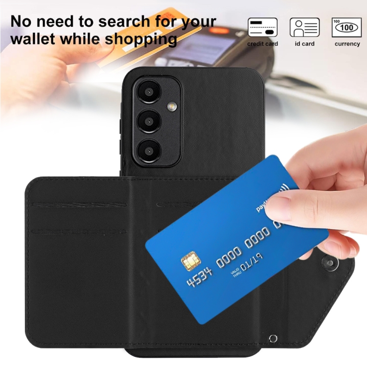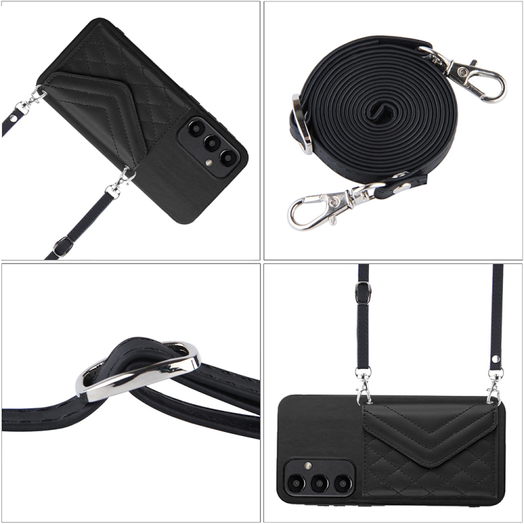 Estuche para Teléfono Samsung Galaxy A55 Rfid con Bolsa para Tarjetas Textura Rómbica y Cordón Largo (Negro)