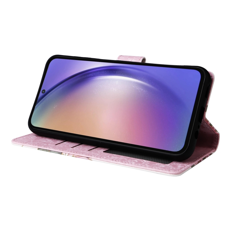 Funda de Cuero para Samsung Galaxy A55 con Protección Rfid y Pintura Bronceadora (Flor Rosa)