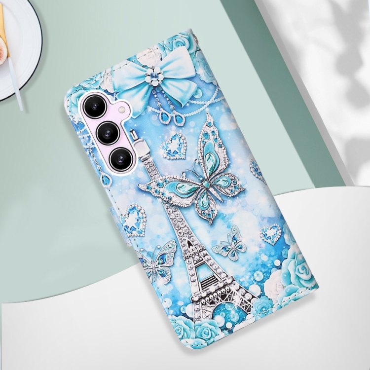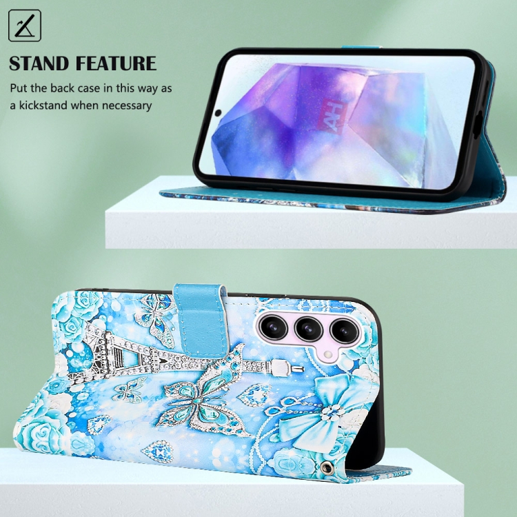 Funda para Teléfono Samsung Galaxy A55 Cuero Tejido Liso Patrón Mariposa Torre