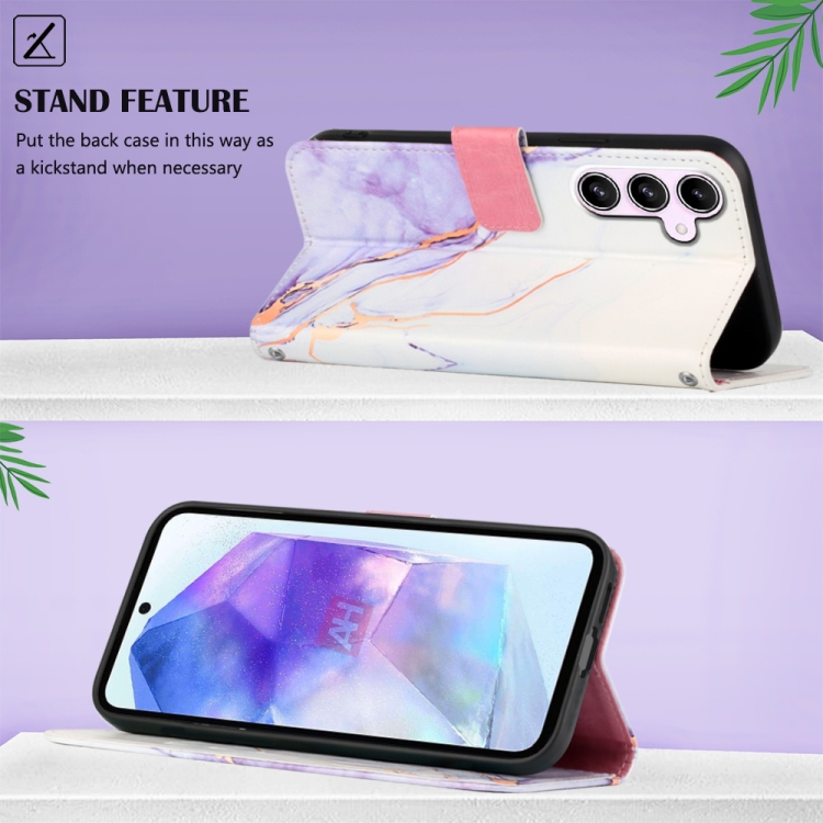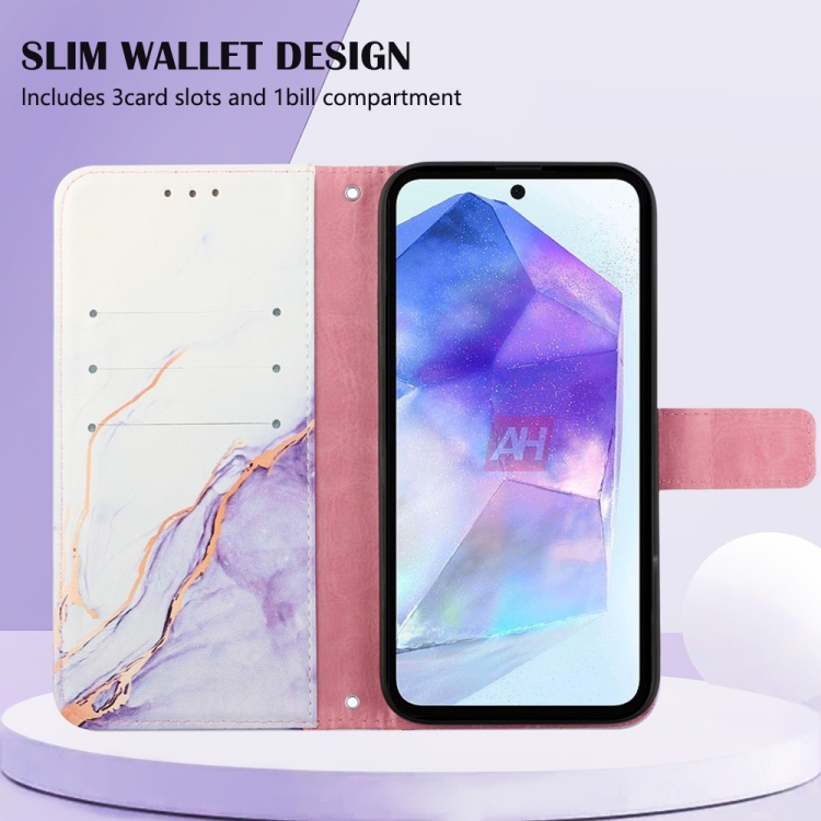 Funda para Teléfono Samsung Galaxy A55 Pt003 Cuero con Tapa Patrón Mármol (Blanco y Morado)