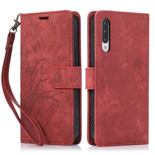 Funda para Teléfono Samsung Galaxy A70 A70S Cuero Relieve Mariposa Orquídea (Rojo)