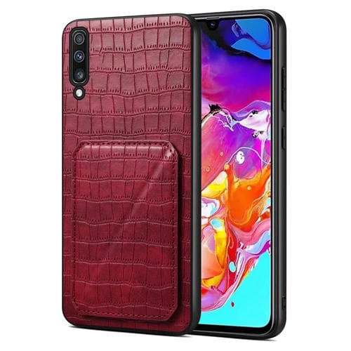 Funda Trasera Denior para Samsung Galaxy A70 Piel de Cocodrilo con Soporte (Rojo Rosa)