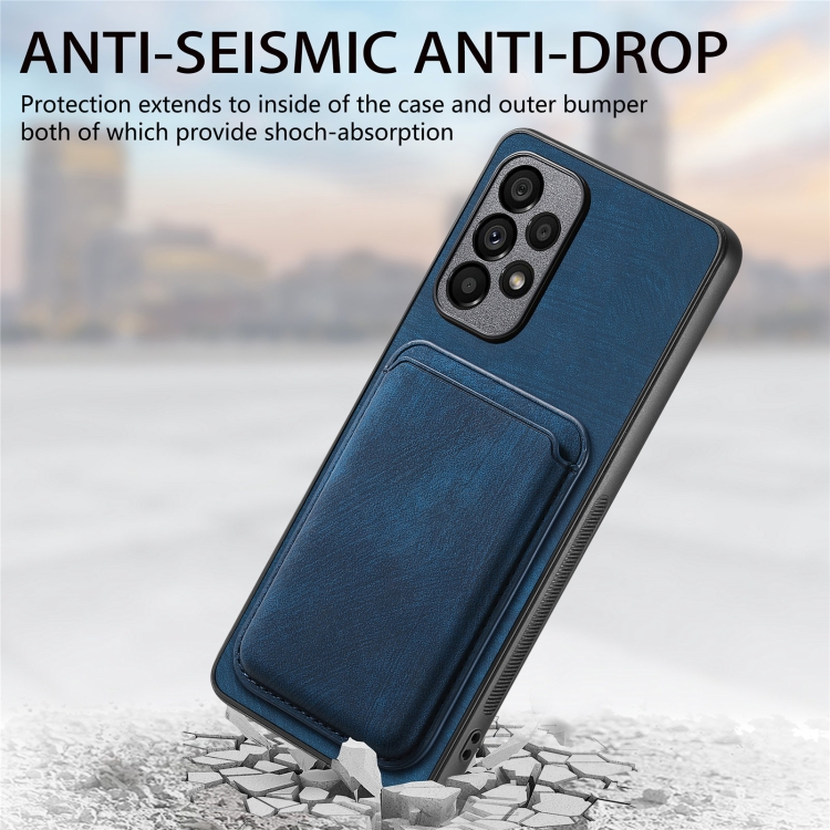 Funda de Teléfono Samsung Galaxy A71 Magnética con Bolsa de Tarjeta de Cuero Retro (Azul)
