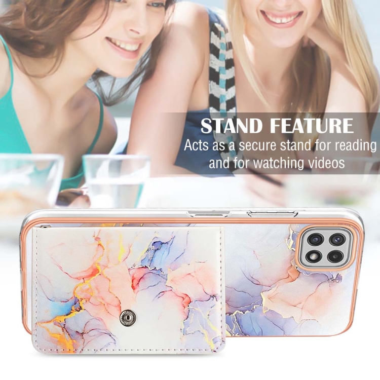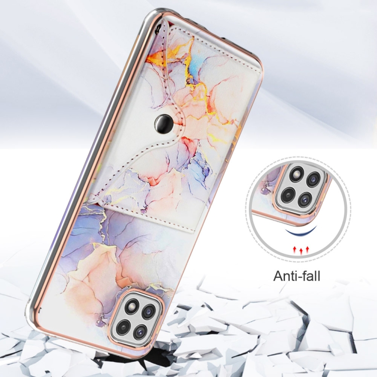 Estuche para Teléfono Samsung Galaxy M32 con Ranura para Tarjeta Imd Patrón Mármol (Blanco)