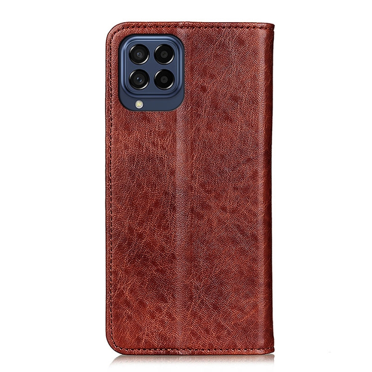 Funda para Samsung Galaxy M53 5G Magnetic Crazy Horse Textura Horizontal Flip Cuero (Marrón)