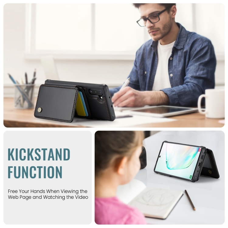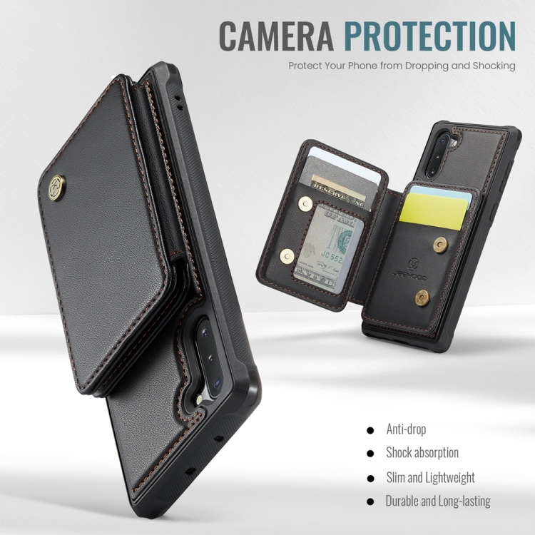 Estuche para teléfono Samsung Galaxy Note10 5G Jeehood J05 cuero Rfid magnético empresarial (Negro)