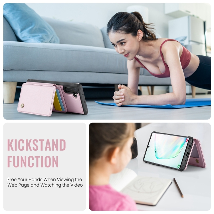 Estuche para Teléfono Samsung Galaxy Note10 5G Jeehood J05 Cuero Rfid Magnético Empresarial (Rosa)